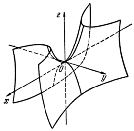 Прим.: Изображение гиперболического пaраболоида дано на следующей странице.