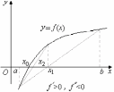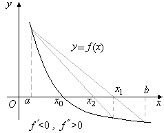Будем предполагать, что функция f(x) непрерывна на отрезке [a, b] (для метода хорд можно потребовать на интервале) и имеет на этом интервале первую и вторую производные, причём обе они знакопостоянны (в частности отличны от нуля). Будем также предполагать, что функция f(x) принимает на концах отрезка значения разного знака. В силу знакопостоянства первой производной функция f(x) строго монотонна, поэтому при сделанных предположениях уравнение (1.1) имеет в точности один корень на интервале (a, b).