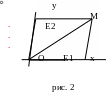Рассмотрим тогда векторы: 1= 1 и 2 = 2 (рис. 2). Поскольку точки О, Е1, Е2, не лежат на одной прямой, поэтому векторы 1 и 2 не коллинеарны, следовательно, они образуют базис совокупности V2 всех векторов плоскости. Таким образом, мы приходим к упорядоченной тройке R={О, 1, 2}, состоящей из точки О и двух неколлинеарных векторов 1 и 2.