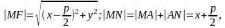 - расстояние от фокуса F до директрисы d (называется параметром параболы