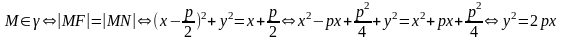 Теорема. В канонической системе координат уравнение параболы может быть записано в следующем виде: