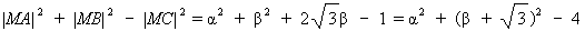 - некоторая точка этой окружности. Требуется доказать, что |МА|2 + |МВ|2 = |МС|2.По формуле расстояния между двумя точками имеем: