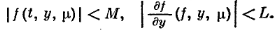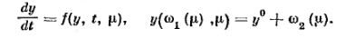 Можно ставить вопрос иначе. Допустим, что решение невозмущенной задачи (2.3.2) существует, единственно и принадлежит некоторой области G пространства переменных y(t,μ) при, 0≤t≤T. Величину T в данном случае можно, например, установить непосредственно из явного вида y(t). Будет ли при достаточно малых μ решение задачи (2.3.1) также существовать на всем [0,T] и подчиниться формуле (1.3)? Ответ на этот вопрос дает следующая