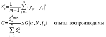 Для этого сначала считаются дисперсии, характеризующие рассевание результатов на каждом u-м опыте.