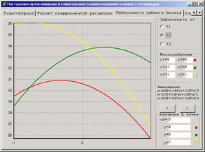Сведения о функциональных ограничениях на ее применение: данная программа корректно функционирует при количестве параметров равном 3. При небольшой модификации программы (замены названий факторов на новые) можно решать общую задачу анализа и статистической обработки полнофакторного эксперимента с ортогональными планами второго порядка.
