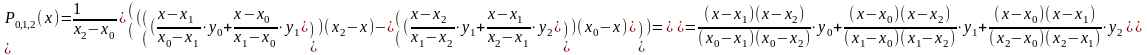 Пусть функция f задана в трех точках х0, х1 и х2 своими значениями у0, у1 и у2 и требуется вычислить ее значение в точке х