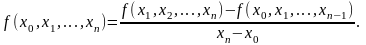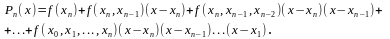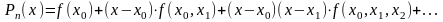 Он называется интерполяционным многочлен Ньютона для заданной функции. Эта форма записи более удобна для использования, поскольку при добавлении к узлам x0, x1, …, xn нового xn+1 все вычесленные раньше члены остаются без изменений, а в формулу добавляется только одно слогаемое. При использовани формулы Логранжа нужно вычислять все заново.