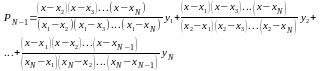 Вообще, если в (n+1)-й точке хi (i=0,1,…,n) функция f принимает значения yi (i=0,1,…,n), то значение интерполяционного многочлена Лагранжа степени n в точке х