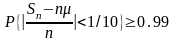 в надежные границы. Если мы желаем, чтобы с вероятностью 0,99 или большей среднее значение выборки Sn/n отличалось от неизвестного среднего значения генеральной совокупности менее, чем на 1/10, то объем выборки должен быть взят таким, чтобы