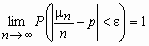 Иначе говоря, вероятность того, что среднее Sn/n отличается от математического ожидания меньше, чем на произвольно заданное