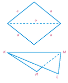 Далее следует нарисовать на картоне фигуру, изображенную на рис. 23, которая состоит из двух треугольников. Буквы a и e обозначают длины соответствующих сторон. К выбранному ранее значению a = 12 хорошо подходит