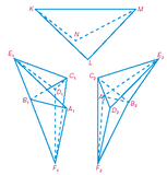 Предположим сначала, что все грани многогранника — треугольники2. В этом случае длины его ребер однозначно определяют форму треугольных граней. Поэтому, если многогранник выпуклый, то длины ребер однозначно определяют форму многогранника, так как по теореме Коши под многогранником понимается множество M плоских многоугольников - граней, расположенных в пространстве так, что каждая сторона любого из них является стороной в точности ещё одного многоугольника. А если у многогранника однозначно задана форма, следовательно, и его объем определен также однозначно.
