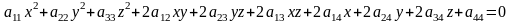 Поверхностью второго порядка S называется геометрическое место точек, декартовы прямоугольные координаты которых удовлетворяют уравнению вида:
