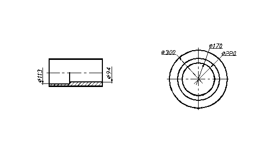 За необхідності розмір діаметра може бути зазначений з обриванням розмірної лінії. Це можливо у випадках, коли зображення виконують із суміщенням половини вигляду та половини розрізу деталі, а також коли через один центр проведено кілька розмірних ліній діаметрів кіл (рисунок 1.41). Обривання розмірної лінії роблять трохи далі від осьової лінії деталі.