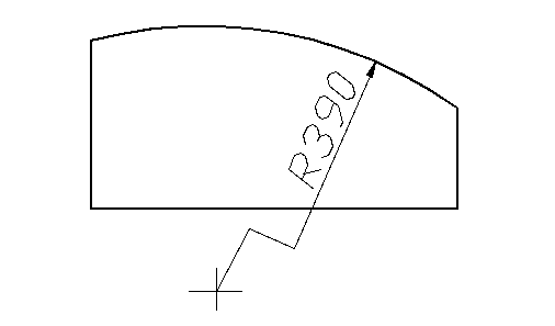 При великій величині радіуса центр допускається наближати до дуги, а розмірну лінію виконувати зі зломом під кутом 90о (рис. 1.39).