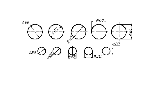 На рисунку 1.41 наведені різні варіанти нанесення розмірів діаметрів.