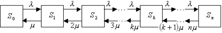 Из рис.1 видно, что процесс, протекающий в СМО, представляет собой частный случай процесса гибели и размножения.