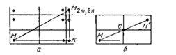 Дійсно, тільки що було з'ясовано, що періодичні ті і лише ті траєкторії, які (після випрямлення) відповідають прямим, що йдуть з точки М в одну з точок виду М2m,2n. Зауважу, що точка М2m,2n отримується з М зсувом на вектор 2m·АВ + 2·AD (*) так, що ΔМ М2m,2n К має катети з довжинами MK=2ma1 і М2m,2nК=2na2. Таким чином k=tgα=2ma1/2na2=m/n ·a2/a1, тобто k вимірне з a2/a1. Навпаки, якщо число k вимірне з a2/a1, тобто k= m/n ·a2/a1, то будь-яка пряма, що виходить з точки М з тангенсом кута нахилу k, проходить через точку, що отримується з М зсувом на вектор (*), тобто через точку М2m,2n .Якщо ця пряма не проходить через вершини прямокутників, то їй відповідає неособлива періодична траєкторія, що й потрібне було довести.
