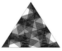 Але якщо ΔАВС — тупокутний, то ця конструкція періодичних траєкторій не спрацьовує — пружна нитка зіскочить з пластинки через вершину тупого кута. Отже знайти періодичні більярдні траєкторії в тупокутних трикутниках досить важко.