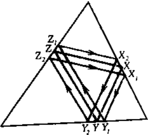 Якщо трикутник АВС вважати плоскою пластинкою, то кожну траєкторію побудованого пучка можна уявляти собі як пружну замкнуту нитку, обвиваючу цю пластинку і поперемінно перехідну з однієї неї сторони на іншу 6 разів.