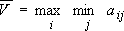 т.е определяется минимальный выигрыш для игрока 1 при условии, что он примет свою i-ю чистую стратегию, затем из этих минимальных выигрышей отыскивается такая стратегия i=i