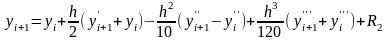 В заключение приведём формулы, обеспечивающие более высокую степень точности, но требующие вычисления, кроме второй, ещё и третьей производной искомого решения. А именно, используя Формулу Тейлера и употребляя приём, аналогичный указанному выше, получаем формулы