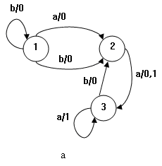 Автоматом называется пятерка A = (S, I, O, h, s1), где S множество состояний с выделенным начальным состоянием s1, I и O соответственно входной и выходной алфавиты, h S I S O отношение переходов‑выходов. Элементами множества h являются четверки вида (s, i, s, o), называемые переходами; при этом говорят, что автомат может перейти из состояния s S под действием входного символа i I в состояние s S с выдачей выходного символа o O, если четверка (s, i, s, o) содержится в h.