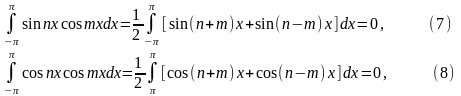 называются ортогональными на этом промежутке, если интеграл от их произведения равен нулю: