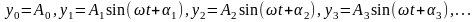 Рассмотрим для примера сложение трех синусоидальных величин: