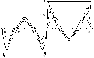 и нескольких частных сумм ряда Фурье: