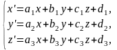 где образы начала координат и базисных векторов при преобразовании g имеют координаты: O’(d1, d2, d3),