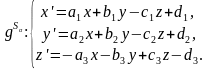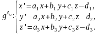 точка М переходит в точку М1(x-a, y-b, z-c). Далее, при аффинном преобразовании g точка М1 переходит в точку М2(a1x + b1y + + c1z - aa1 - bb1 - cc1 + d1, a2x + b2y + c2z - aa2 - bb2 - cc2 + + d2, a3x + b3y + c3z - aa3 - bb3 - cc3 + d3). M2 при параллельном переносе