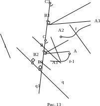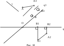 и АА3||q1. Мы получили, что при этой трансформации точка А смещается параллельно прямой q1 на расстояние, пропорциональное ее расстоянию от прямой q1: