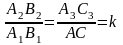 (соответственные углы при пересечении параллельных прямых секущей), следовательно, прямоугольные треугольники АВС и А3В3С3 подобны, исходя из этого