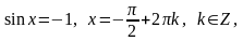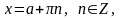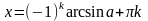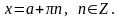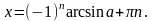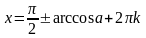 может принимать любые целые значения, каждому из них соответствует определенный корень уравнения; в этой формуле (равно как и в других формулах, по которым решаются элементарные тригонометрические уравнения)