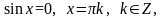 Особо отметим некоторые частные случаи элементраных тригонометрических уравнений, когда решение может быть записано без применения общих формул: