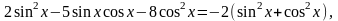 Решение. Это уравнение однородное второй степени. Разделим обе чести уравнения на