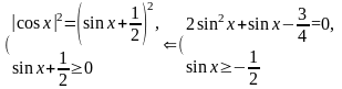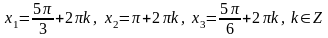 Итак, основная схема отбора корней состоит в следующем. Находится наименьший общий период всех тригонометрических функций входящих в уравнение. На этом периоде отбираются корни, а затем оставшиеся корни периодически продолжаются.