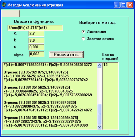 Рисунок 1 – Результат выполнения программы (Метод дихотомии).