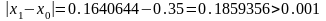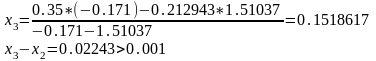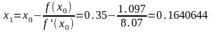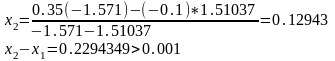 Из условия следует , что х0=b=0.35, тогда за х1 принимаем a = х1=-0.1