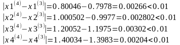 , где n=5 выполнено, необходимая точность достигнута, поэтому итерационный процесс можно прекратить.
