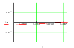 Визуально определяем границы отрезка, на котором находится корень. Выделяем отрезок [a,b], (а=-0,1, b=0.35).