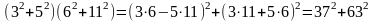 Из этой формулы, в частности, вытекает, что если каждое из чисел a и b можно представить как сумму квадратов двух целых чисел, то их произведение тоже представимо в таком виде. Формула (1) является простым следствием коммутативного, ассоциативного и дистрибутивного законов.