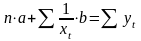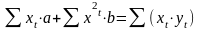 Расчет неизвестных параметров выполним методом наименьших квадратов (МНК), построив систему нормальных уравнений и решая ее, относительно неизвестных параметров а и b.