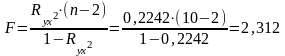Для проверки значимости уравнения регрессии в целом найдем расчетное значение критерия Фишера: