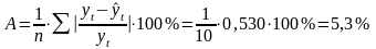 Фактические значения выручки отличаются от расчетных, полученных по модели на 5,3%. Ошибка небольшая, модель считается точной