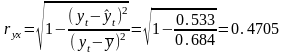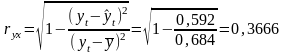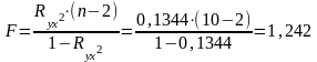 F(расч.) = 1,242 < F(табл.)= 5,318, т.е. уравнение степенной модели в целом можно считать статистически незначимым.