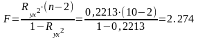 F(расч.) = 2,274< F(табл.)= 5,318, т.е. уравнение в целом можно считать статистически незначимым.