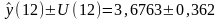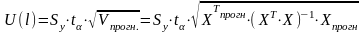 рассчитываем доверительные интервалы, используя величину отклонения от линии регрессии (U):