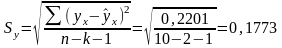 Коэффициент Стьюдента tα для m = 10 – 2 – 1 = 7 степеней свободы и уровня значимости α = 0,05 равен 2,36.
